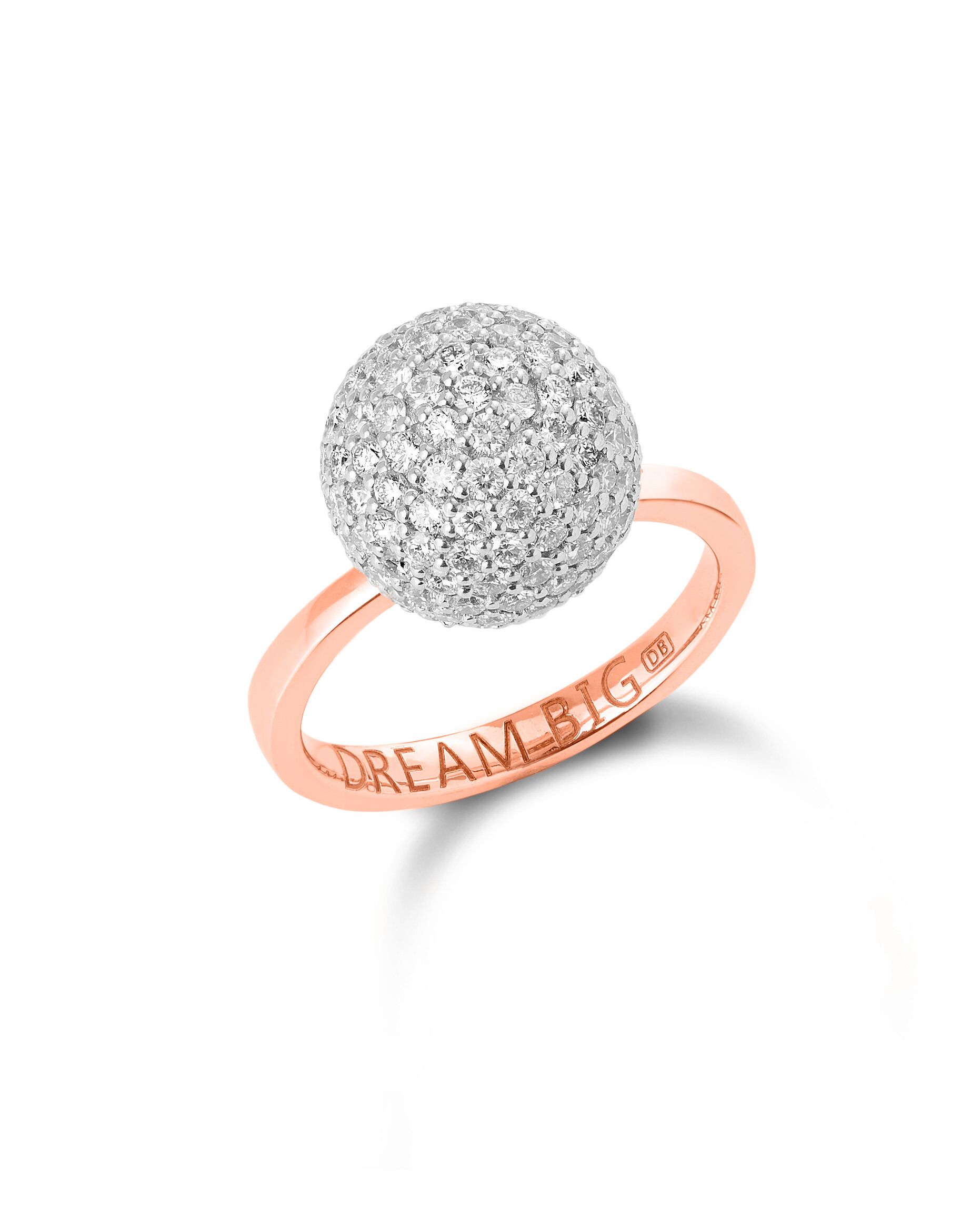 The ring is designed to dazzle and features a ball of diamonds in a pavé setting that will inspire you to dream big. It’s the perfect way to spoil a loved one or treat yourself and add some sparkle to your day. You also have the option to add a personal message that will inspire the one you love.